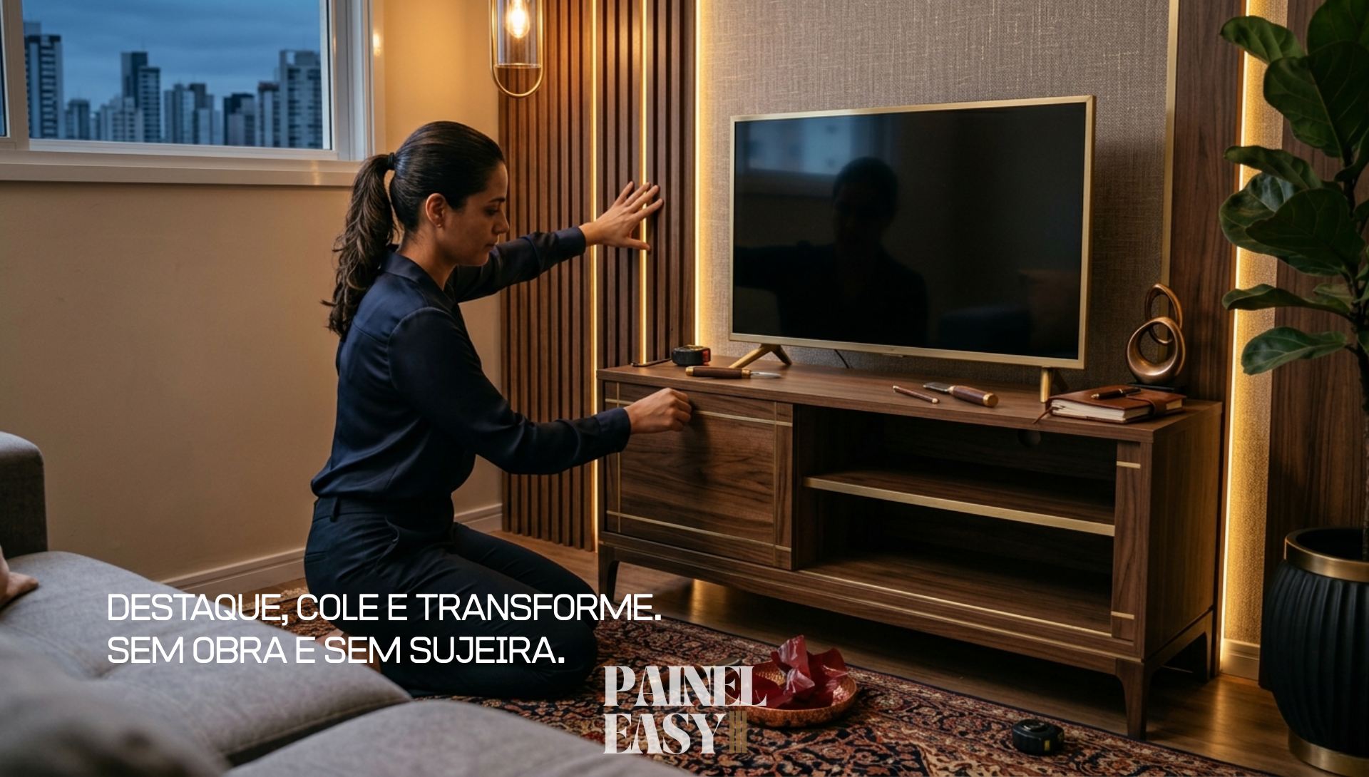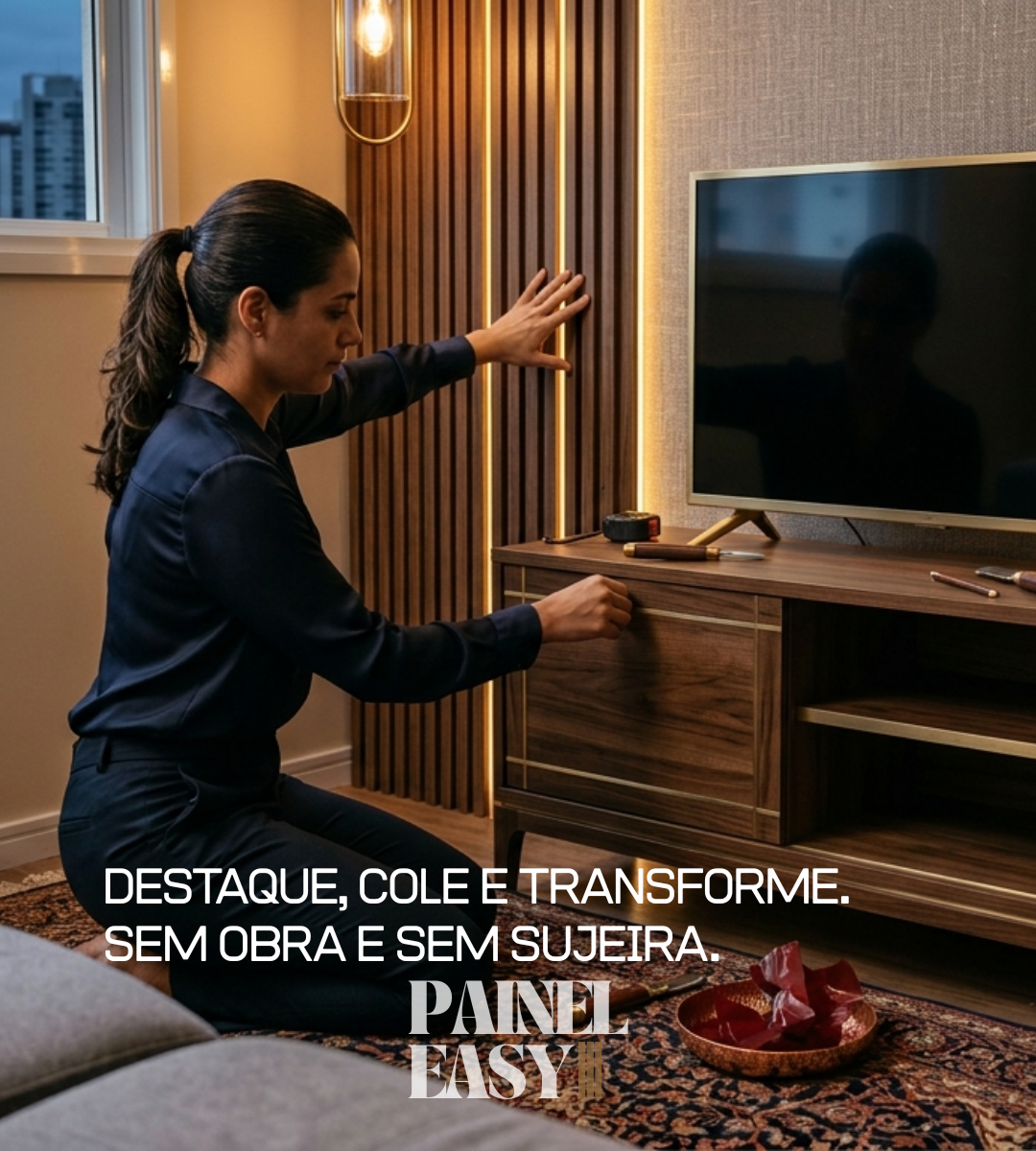 Com certeza! O Painel Easy foi projetado justamente para quem não quer gastar com mão de obra nem ferramentas pesadas. Ele é autocolante e leve. Basta remover a película protetora e pressionar na parede. Se você sabe usar uma trena e um estilete, você consegue instalar perfeitamente.